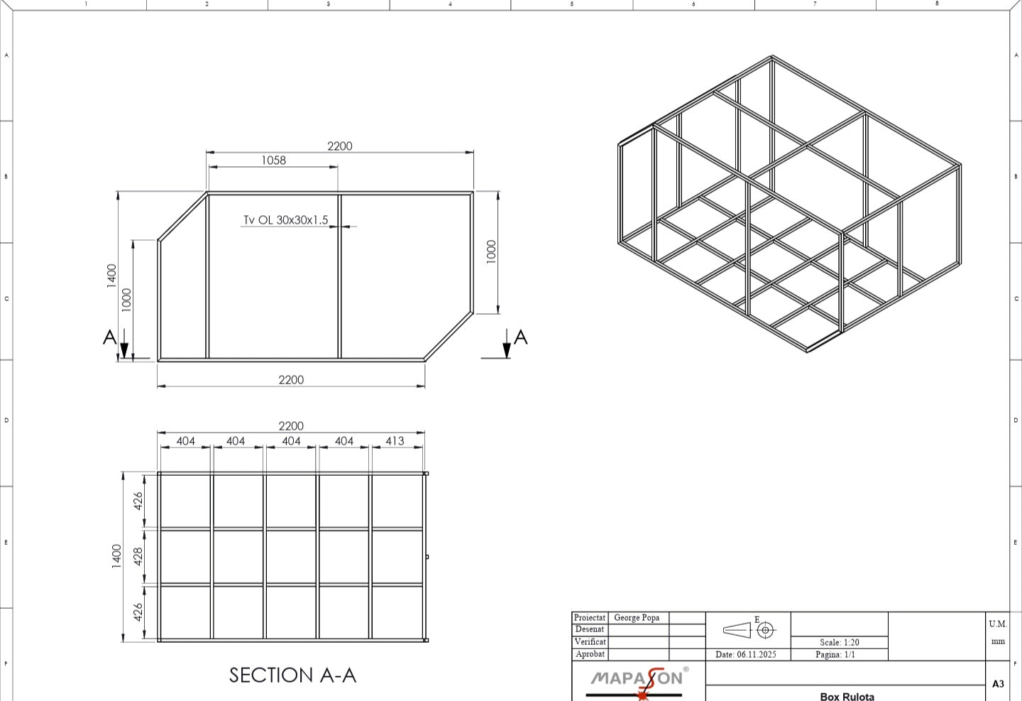Capacitate dormit: 2 persoane adulte (+ opțional pat copil).