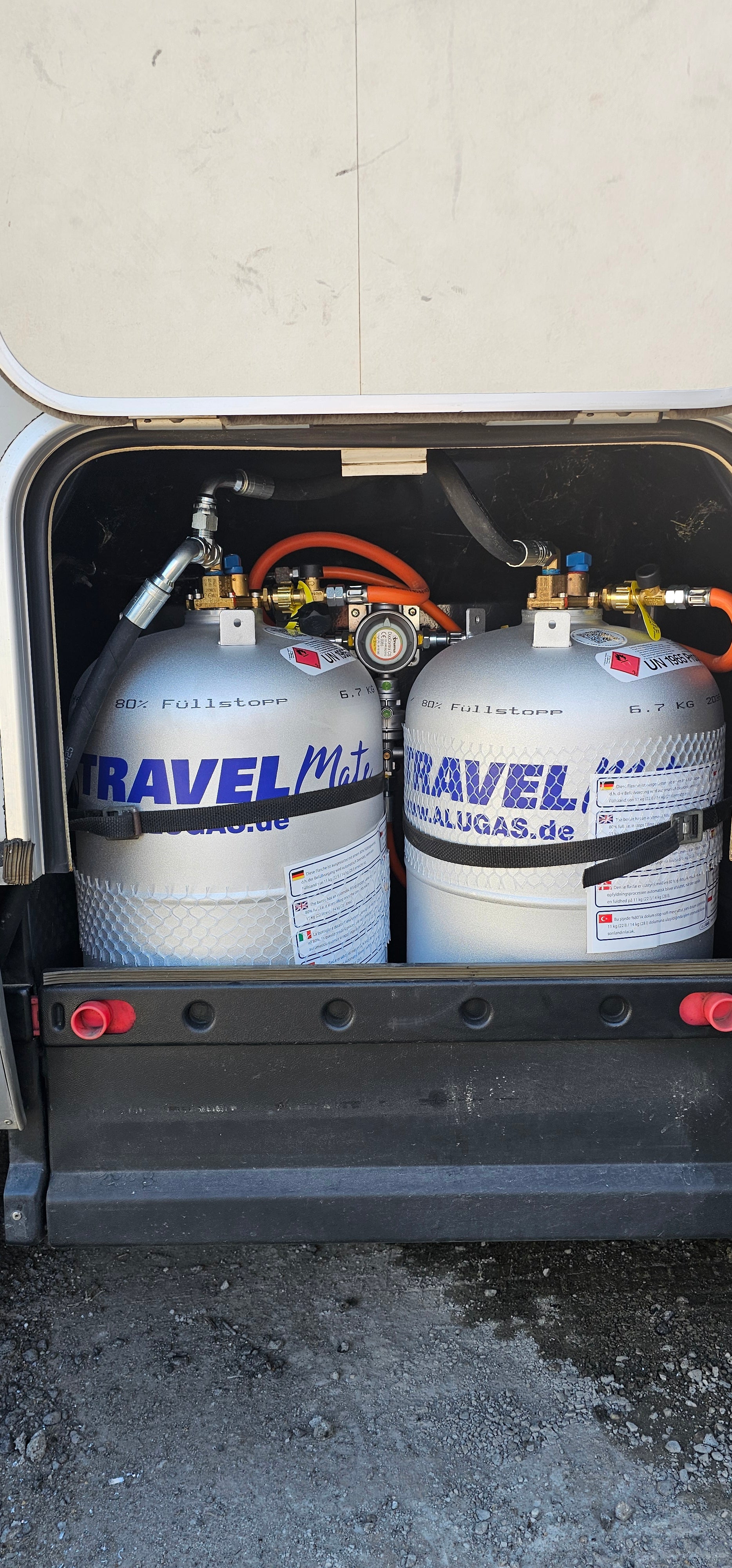 Serviciu de montaj sistem GPL autorulota, rulota sau campervan cu doua rezervoare Alugas, Campko, Duocontrol Truma sau Gok, alimentare din exterior si control total al sistemului de gaz al autorulotei.